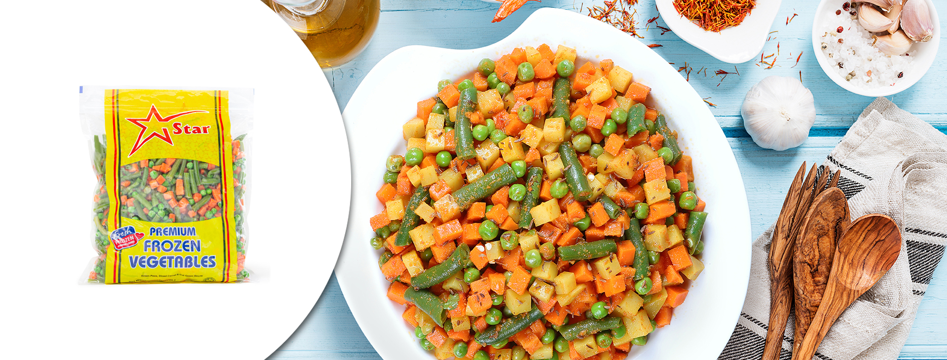 STAR Premium Frozen Foods brings you a range of the choicest Premium vegetables which are fresh-frozen and ready for cooking…all the year round. STAR Premium Frozen Vegetables are highly nutritious because they are CAREFULLY SELECTED, FRESHLY PICKED & SNAP FROZEN the same day to maintain great taste & natural goodness. So, save yourself the haggle with the sabziwala and the hassle in the kitchen. Simply open a bag of Star Premium Frozen vegetables and add whip up a delicious and healthy meal for your family.
